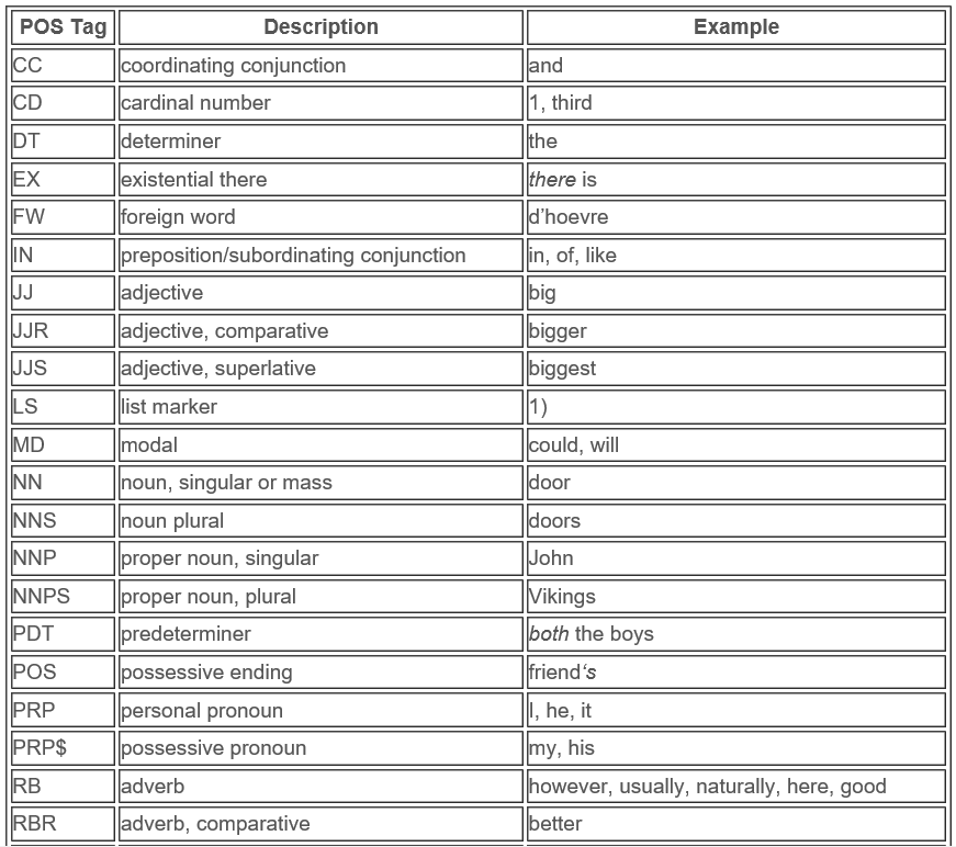 그 외에도 pos_tag를 이용하면 좋은 기능들이 많다.